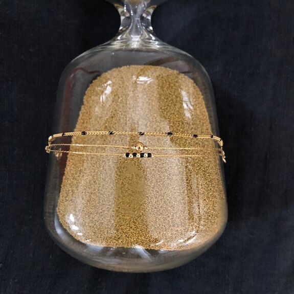 Stylish and modern, the Anna bracelet features multiple rows of fine stainless steel chains and Miyuki beads. Experience the sleek and durable design crafted for effortless wear and lasting elegance.