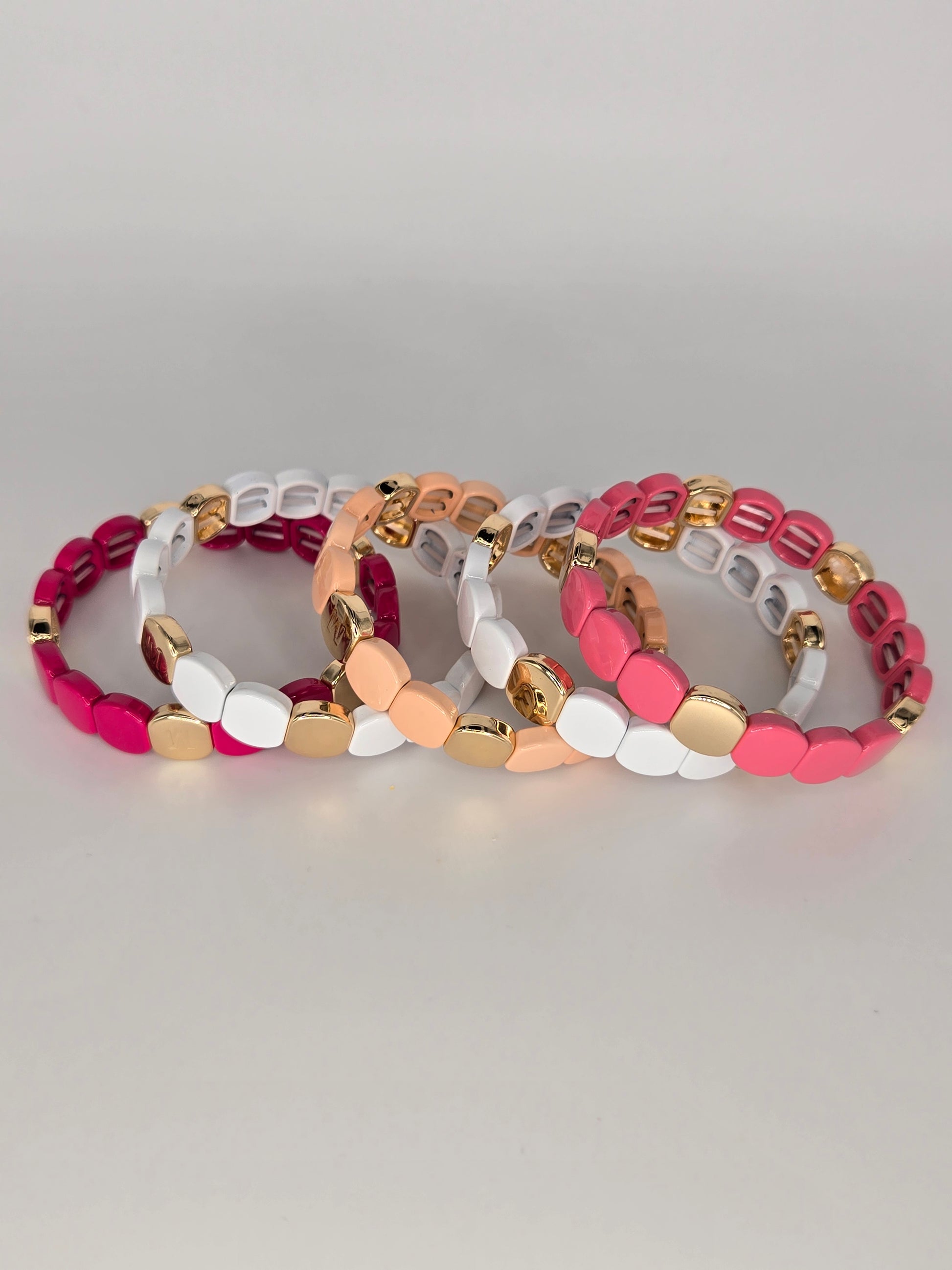Enhance your everyday look with our timeless bracelet. Made of enameled metal mounted on elastic, this versatile piece can be worn alone or stacked with others for a chic and stylish look. Perfect for any occasion, this bracelet is a must-have for any fashion-forward individual.