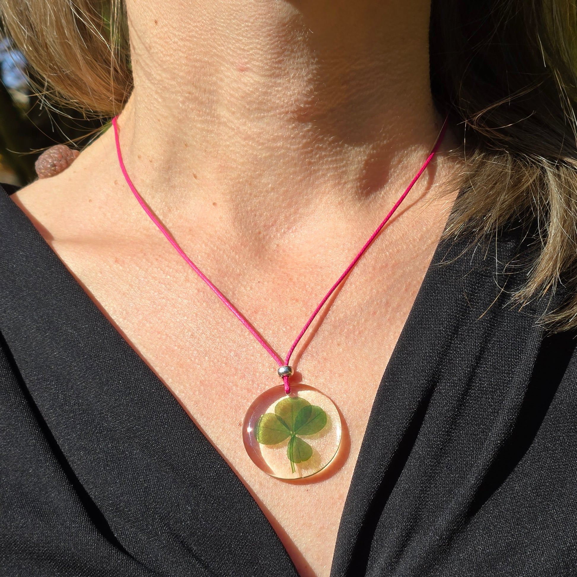 Crafted from real, natural clovers, this chic and elegant necklace adds a touch of nature to your style. Adjustable necklace, handmade with care, it's a unique piece that adds sophistication to any outfit. Bring a piece of nature with you wherever you go with this beautiful clover necklace.